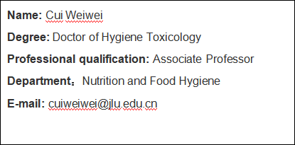 • 2010/09-2013/06, Doctor of Hygiene Toxicology, School of Public Health, Jilin University