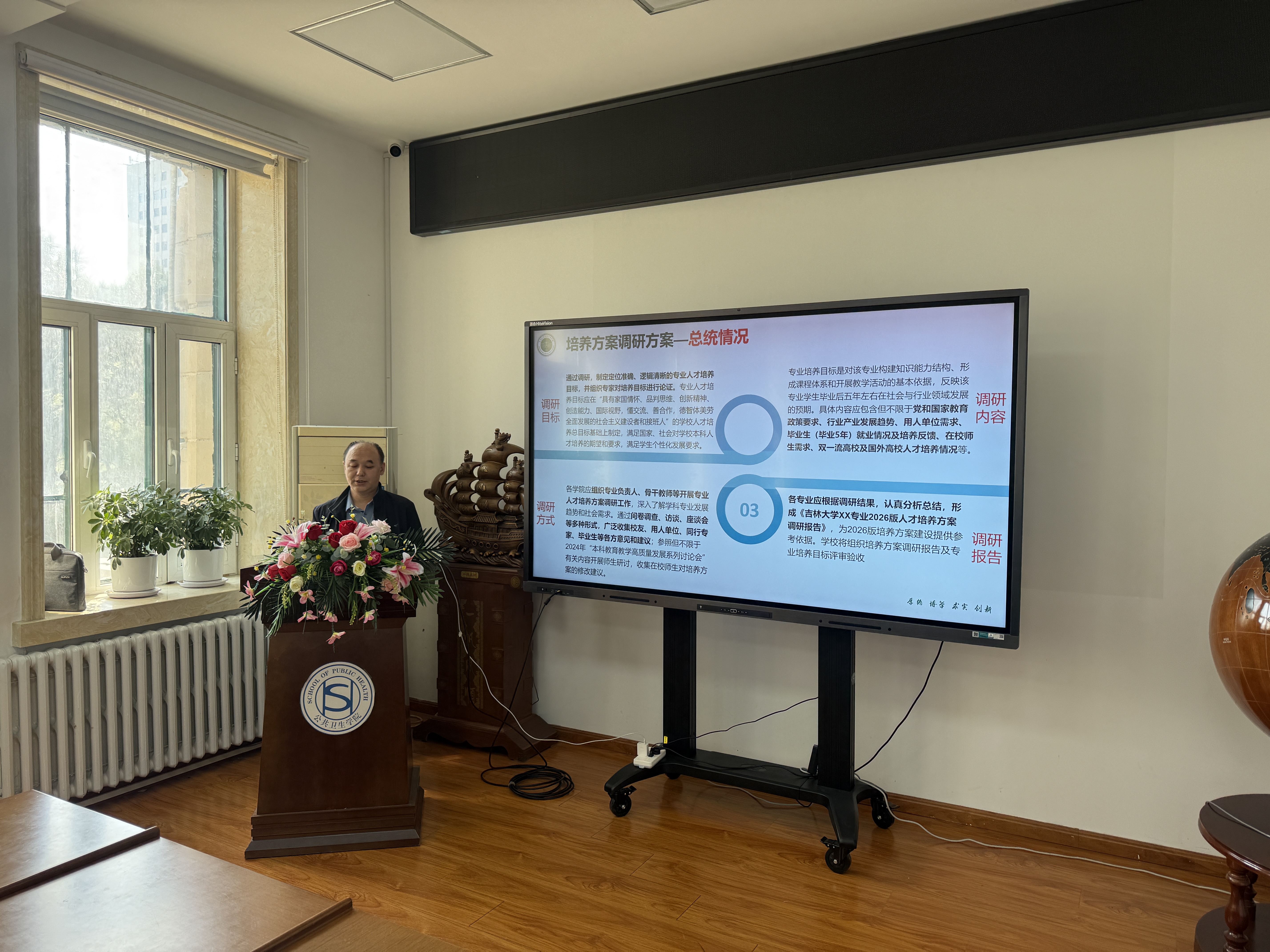 教学副院长王志成主持会议并传达了本科生院关于2026版本科专业人才培养方案调研工作的相关要求,从调研目标、调研内容、调研方式和调研报告要求等方面进行详细的讲解。本次2026版本科专业培养方案建设要坚持“立德树人”根本任务,以“学生中心、产出导向、持续改进”(OBE)为核心理念,对标国内高水平院校相同专业,积极调整核心专业课程,充分进行数智赋能,打造思政引领的创新人才培养体系。