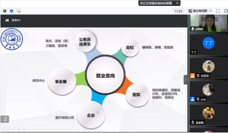 于6月7日晚在线上开展了“‘职’无不言”系列就业指导活动之基层选调生就业经验分享会。本次活动邀请了学院2019级劳动卫生与环境卫生学专业硕士研究生赵晓秋和2019级公共卫生专业硕士研究生胡军军作为主讲人。研究生辅导员丁丁和部分研究生同学参加此次活动。