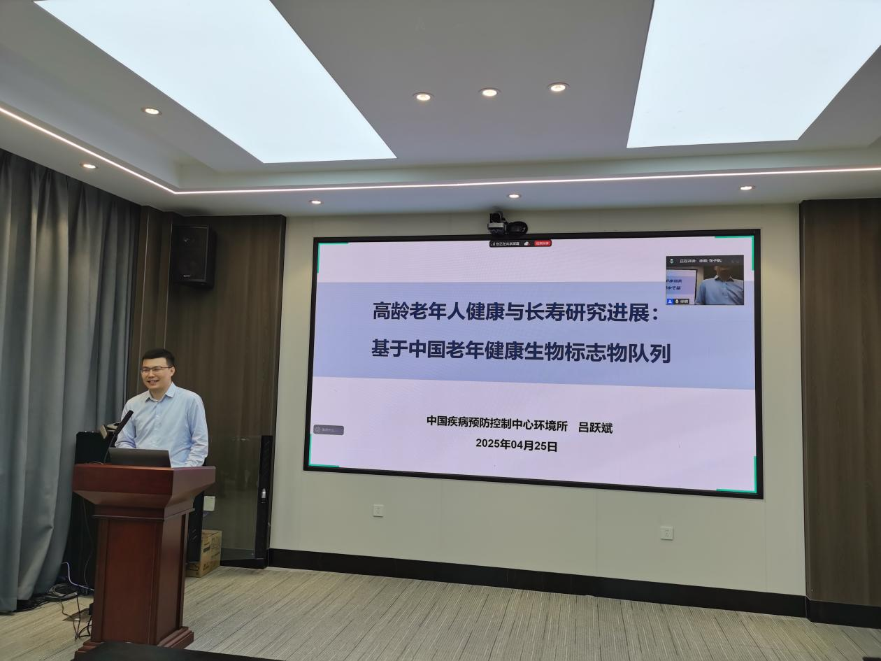 吕跃斌副研究员系统阐述了团队在中国老年健康生物标志物队列建设中的创新性工作。面对全球老龄化加速的严峻挑战,他着重指出:相较于低龄老年人,高龄群体健康特征与长寿机制研究存在标准和证据空白。研究团队依托中国老年健康生物标志物队列,通过样本库建设、整合多组学技术,取得系列突破性成果——首次揭示我国80岁以上老年人收缩压与死亡风险的U型关联,识别了我国高龄老年人血压的风险最低点和适宜范围;首次发现不同年龄别老年人血脂适宜范围,提出我国高龄老年人血脂适宜水平为血脂边缘升高新理论;基于多维度健康结局建立年龄别BMI分级标准,证实超重及轻度肥胖更有利于高龄老人健康维持。相关成果已转化为《中国高龄老年人血压水平适宜范围指南》等4部行业标准,为老年健康管理提供循证依据。