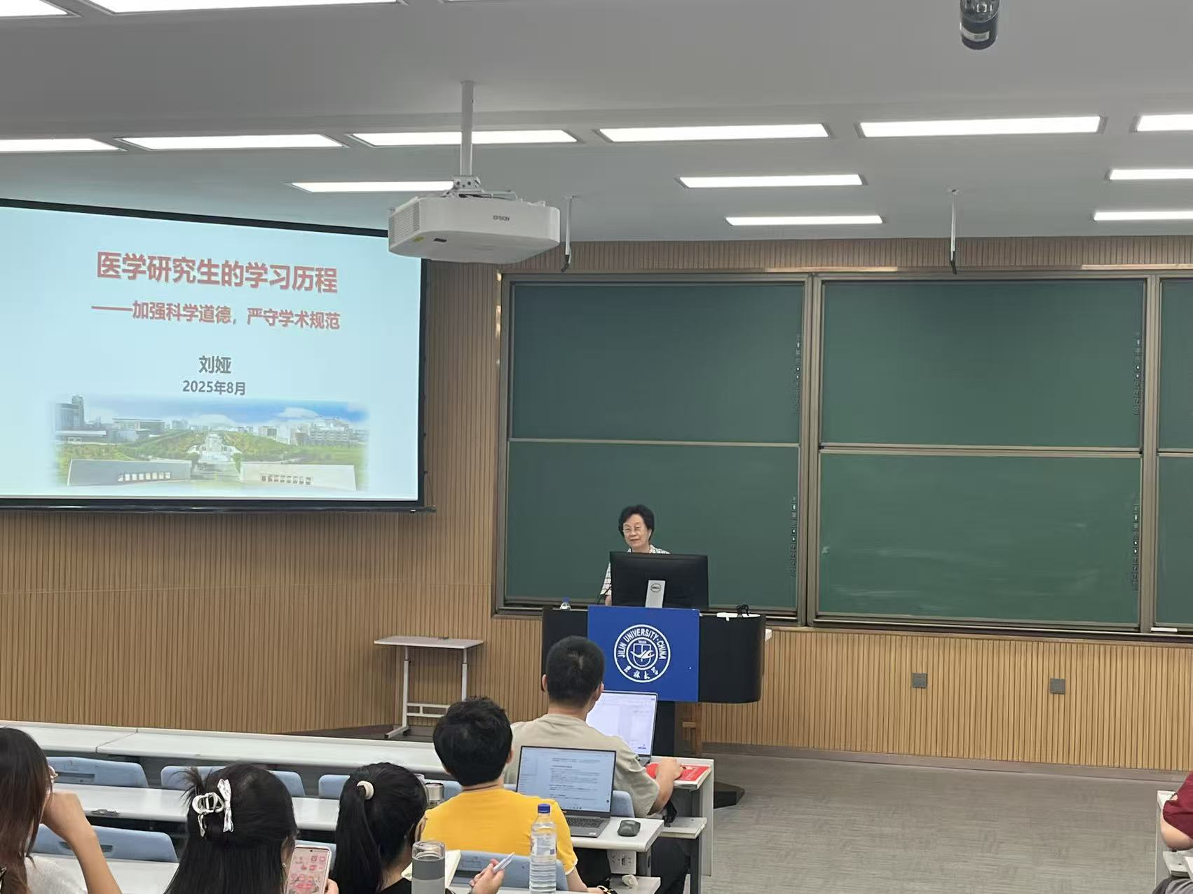 讲座开篇,刘娅老师立足国家战略需求与学校人才培养目标,系统解读了科学道德与学风建设的相关管理规定,深刻阐释其核心要义与重要意义。她强调,“科学道德是科研工作的灵魂,学风是学术发展的基石”,对于医学研究生而言,良好的科学道德素养与严谨的学术作风,不仅是完成学业、开展科研的基本前提,更是未来在公共卫生领域深耕细作、担当社会责任的核心支撑。她呼吁新生们从入学之初便树立敬畏之心,自觉传承科学家精神,将科学道德准则融入学习科研的每一个环节,努力成长为兼具专业能力与高尚品格的科研人才。